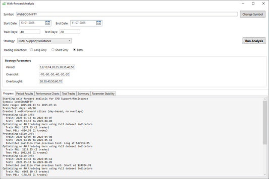 • Bar-Based WFO: Universal timeframe support, ideal for intraday