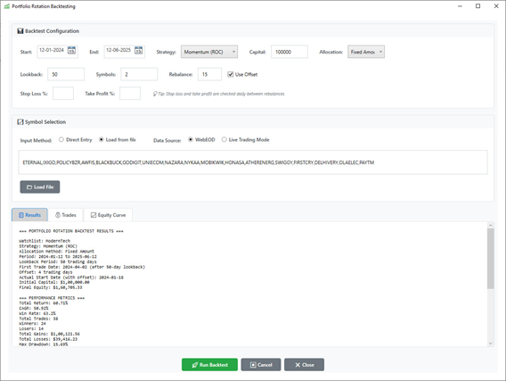• Momentum-Based Rotation: ROC-based stock selection