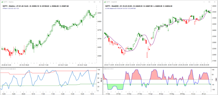 • Multi-Timeframe: 5min, 30min, Daily, Weekly, Monthly analysis